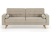 Диван Лакк выполнен в скандинавском стиле: лаконичные формы, опоры из натурального дерева, аккуратные утяжки на спинке и подлокотниках.