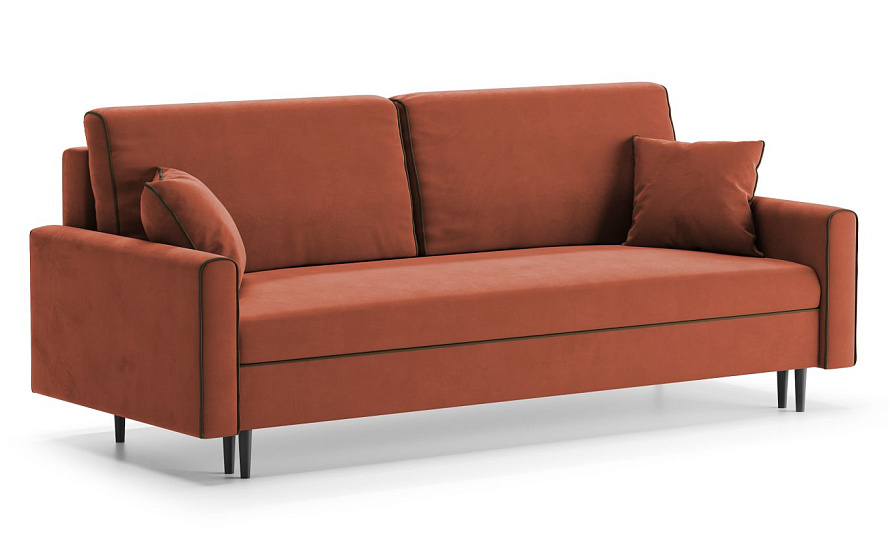 Диван «Порту» — это образец лаконичного дизайна: прямые мягкие подушки, неширокие подлокотники, контрастный кант, элегантные опоры. Он не выглядит громоздким и будет хорошо смотреться в любом помещении, независимо от его размеров. Этому способствуют небольшие подлокотники (всего 7 сантиметров) и высокие опоры, благодаря которым диван словно парит над полом.