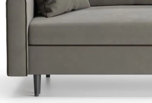 Диван «Порту» — это образец лаконичного дизайна: прямые мягкие подушки, неширокие подлокотники, контрастный кант, элегантные опоры. Он не выглядит громоздким и будет хорошо смотреться в любом помещении, независимо от его размеров. Этому способствуют небольшие подлокотники (всего 7 сантиметров) и высокие опоры, благодаря которым диван словно парит над полом.
